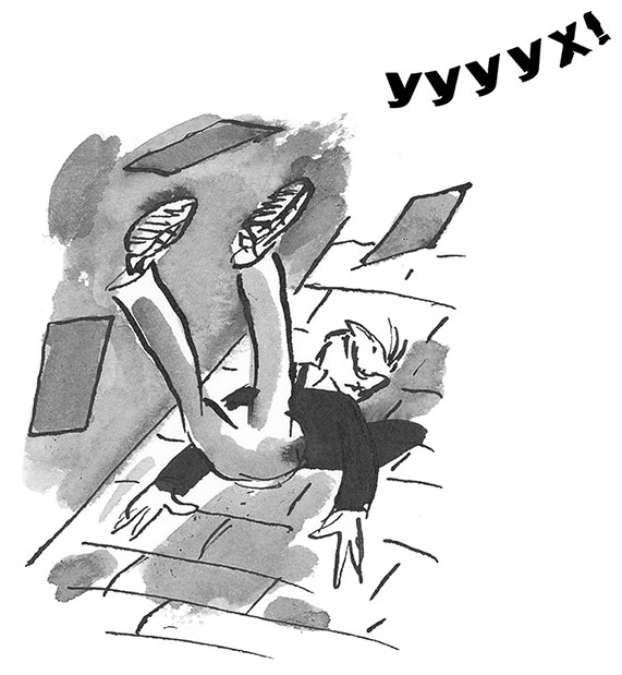 В тот самый миг, как они с грохотом свалились на землю, сам дедушка перелетел за край крыши.