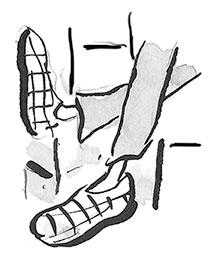 Тощие ноги качались в ночном воздухе, тапки барабанили по витражному окну церкви.