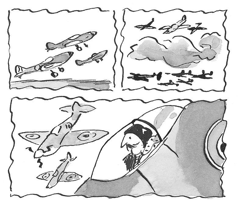 – Ох, да! – прогремел дедушка. – Все взлетное поле разбомбили бы, а мою эскадрилью первой, поэтому я как подполковник и командир должен был возглавить наступление. Через секунды мы уже были в воздухе. Вверх, вверх и прочь. Я разогнал свой «Спитфайр» до трехсот миль в час…