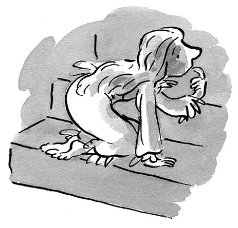 «Значит, они не сломаны!» – поняла девочка. Она поползла по полу со скоростью и грацией гусеницы. Но через минуту-другую осознала, что продвинулась всего на несколько дюймов. Душераздирающе! Она лежала на полу, вконец выбившись из сил и отчаявшись. Такими темпами у нее уйдет месяц на то, чтобы добраться до двери спальни, и год – на спуск по лестнице.
