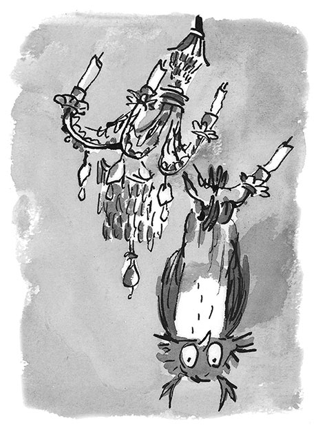 Но зажимая ключ в руке и выпрямляясь, Стелла вдруг медленно-медленно кое-что осознала. На нее таращились два большущих желтых глаза. Совиных. Это был Вагнер. Он висел на люстре вниз головой, словно летучая мышь. Жуткая совиная летучая мышь.