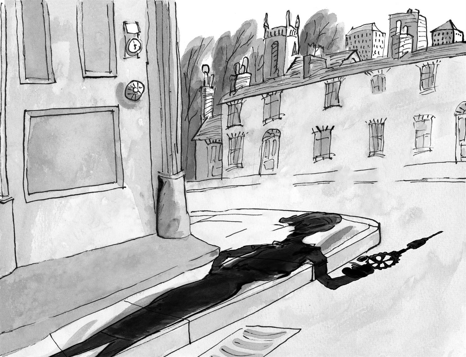 В зале воцарилась мертвая тишина. Альфи сглотнул. Ужасная картина! Конечно, мистер Допотопс был уже совсем старым и неуклюжим, но неужели он и в самом деле мог случайно сам проткнуть себе сердце?