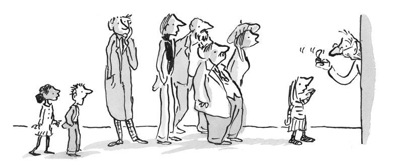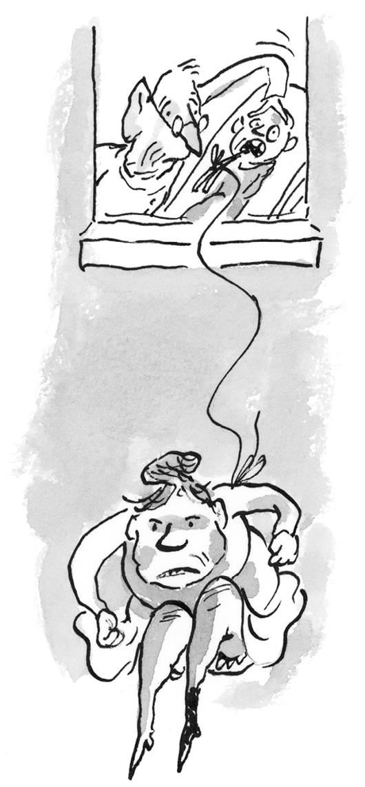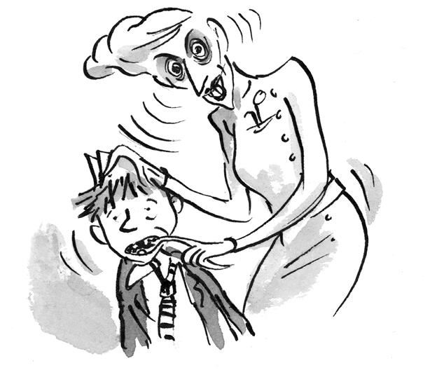 Тогда престарелый дантист призвал на помощь еще более престарелую медсестру, мисс Сухарь, и велел ей ухватиться хорошенько за зуб мальчика и тянуть изо всех сил. Но зуб не поддавался.
