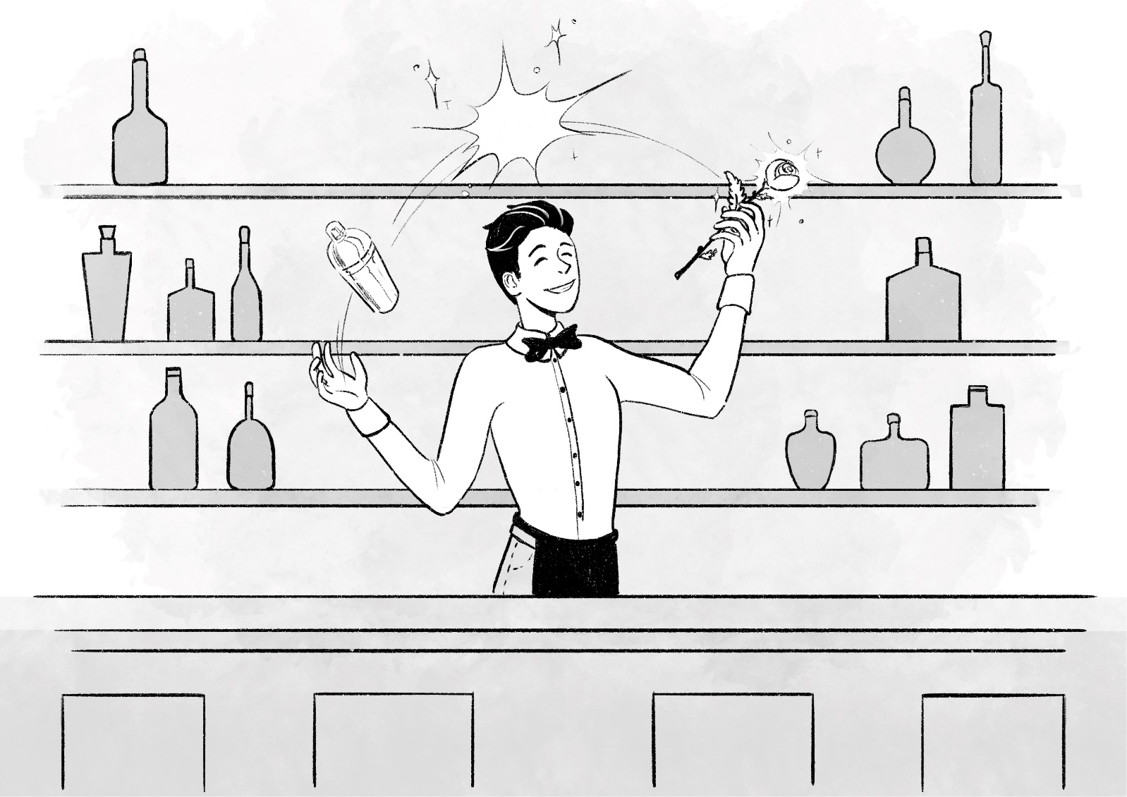 Бармен обязан делать гостя счастливым. Бар – это театр. Гости за стойкой – зрители. И доход актера зависит ровно от того, понравится зрителям выступление или нет. Красота подачи – вот чем отличается высококлассный бармен от унылого буфетчика.