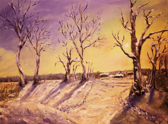 Захрустев замерзшим стогом,Утро иволгой озябшейОттолкнуло хмарь к оврагам,В одеяло тьмы пробравшись.А небритый ветер, пробудившись вяло,Потянул из баньки в небо покрывало.Исчезая, звезды из бездонной синиВолны белых пашен манной оросили.Сквозь хрусталь пороши зорькою-девицейНа янтарный купол лучик опустился.Зашуршало лесом, свет в домах зажгло,В гомоне скотины первое тепло.Змейкою дороги встретил косогорСвежий пар кобылы, ехавшей на двор.За поскрипом сани галок чехардуПо домам погнали петуха-трубу.Над пространством эхом забрехали псы,Разбудив рябину кумачом вдали.И над Русским полем там, где Спаса Лик,Новый день пролился на людей своих!