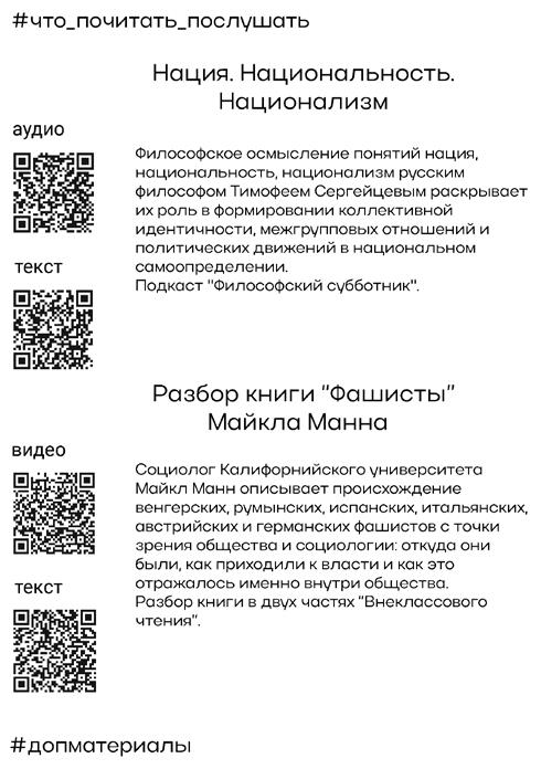 Колониальные корни. Иррациональность и социальное безумие. Нации и классы. Национализм и язык. Национализм, социализм, либерализм. Расизм и его идеологические формы. Расизм и порабощение. Современное рабство. Империализм. Рождение фашизма. Отличия нацизма от фашизма. Нацизм и Россия.