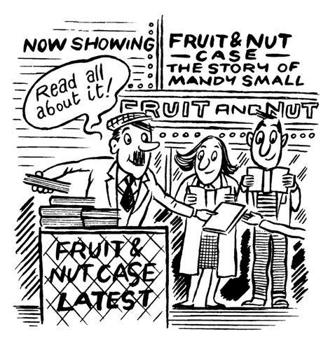 So. Right. As soon as I’ve eaten a bit of toast, and Mum’s had her cup of tea, we go down the stairs, on tiptoe because of Misery Guts, and close the front door behind us really quietly, and run up the road together, laughing, as it is always a relief to know that a) Mum is not late and won’t be threatened with the sack and b) we have not disturbed old Misery Guts and been yelled at.