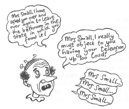 All we have in this upstairs part of the house is one bedroom for Mum and Dad, one (tiny little) bedroom for me, one room for sitting in, one which is a kitchen, and one which is the bathroom, though that is just a measly bit of room shaped like a wedge of cheese, half-way down the stairs, that we have to share with old Misery Guts, who moans like crazy about tide marks round the bath and hairs in the wash basin. She also used to moan about us using her loo paper, so now she carries her own roll with her whenever she goes there.