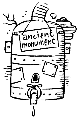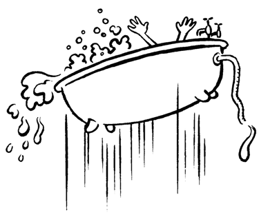 The reason the bathroom looked as if a bomb had hit it was that the hot water thingie had blown up when Dad was running his bath. The hot water thingie looks like an ancient monument.
