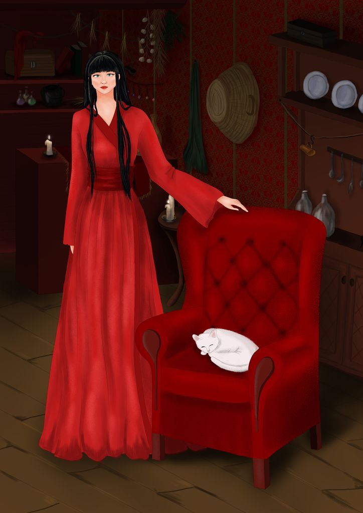 Веспа ходила, укачивая на руках рыжую кошку. Я сидела на самом краешке её антикварного кресла, а в соседнем дремала белая кошка.