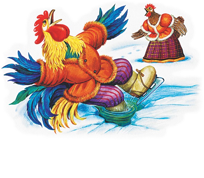 Выздоровел он к зиме и видит, что речка ледком покрылась; захотелось Пете на коньках покататься, а курочка и говорит ему: