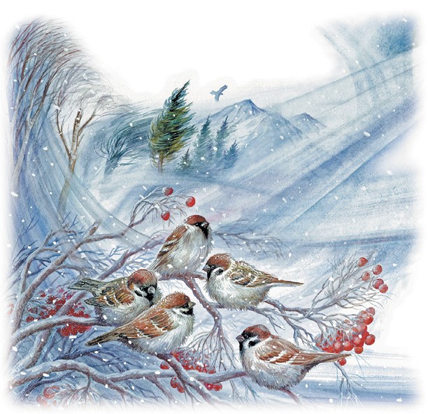 Разозлилася старуха зима: задумала она всякое дыхание со света сжить. Прежде всего стала она до птиц добираться: надоели ей они своим криком и писком.