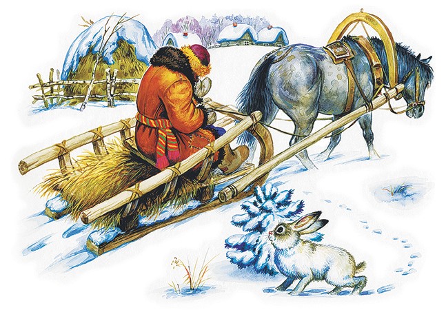 «Ну постой же, – думает зима, – дойму я людей», – и шлёт мороз за морозом, один другого злее. Заволокли морозы узорами оконницы в окнах; стучат и в стены, и в двери, так, что брёвна лопаются. А люди затопили печки, пекут себе блины горячие да над зимой подсмеиваются. Случится кому за дровами в лес ехать, наденет он тулуп, валенки, рукавицы тёплые, да как примется топором махать, даже пот прошибёт. По дорогам, будто зиме на смех, обозы потянулись; от лошадей пар валит; извозчики ногами потопывают, рукавицами похлопывают, плечами передёргивают, морозцы похваливают.