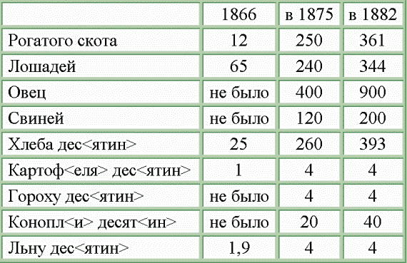 * * *Прискорбные эти страницы о переселенцах позволю себе закончить указанием на развитие благосостояния одной переселенческой партии, очевидно счастливо избежавшей всякого соприкосновения с канцелярской волокитой и справившейся с своими нуждами без всякого содействия «бумаги». Партия эта в 1866 году поселилась в Бийском округе, Верх-Чумышской волости, и образовала д. Ивановку. При начале поселения средства к жизни этих пришельцев были самые нищенские[21]: