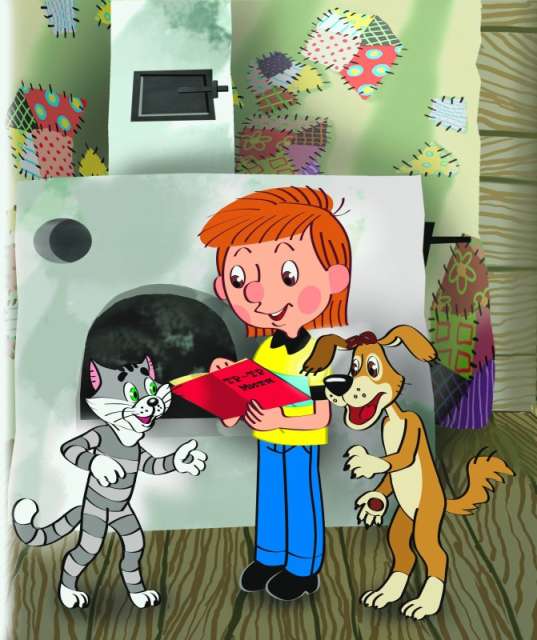 Тут кот услышал, что мыши в подполе заскреблись. Крикнул он Шарика и в подпол побежал с пылесосом. Шарик карандаш в зубы взял и стал дальше калякать: