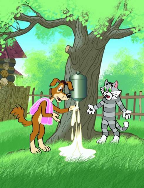 Корова Мурка, которую кот купил, глупая была и балованная. Но молока много давала. Так много, что с каждым днём всё больше и больше. Все вёдра с молоком стояли. Все банки. И даже в аквариуме молоко было. Рыбки в нём плавали.