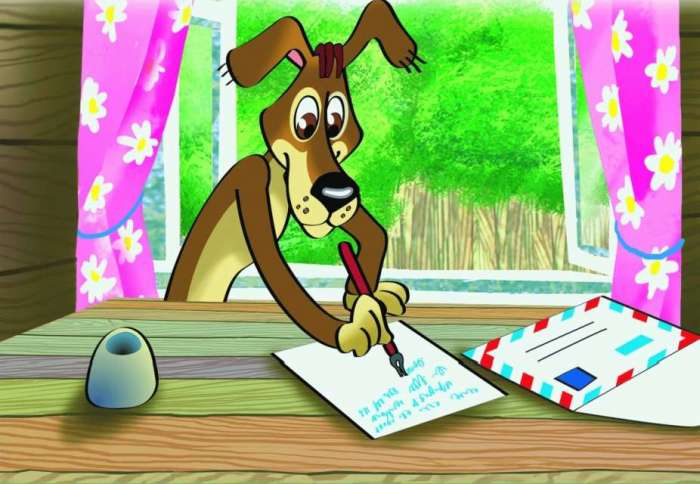 На другой день дядя Фёдор решил письмо домой написать. Чтобы папа и мама за него не беспокоились. Потому что он их очень любил. А они не знали, где он и что с ним. И конечно, переживали.