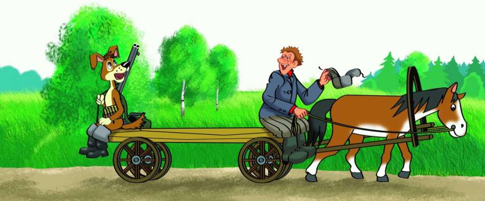 Шарик на ногах не удержался от неожиданности и с телеги полетел вверх тормашками. Как на дорогу – плюх! Ничего себе охота начинается!