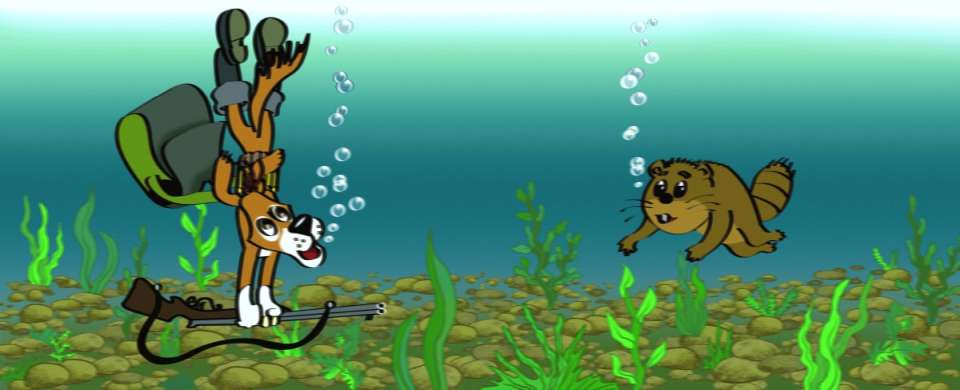 «Что же это выходит? – размышляет пёс. – Это же не охота, это уже рыбалка получается!»