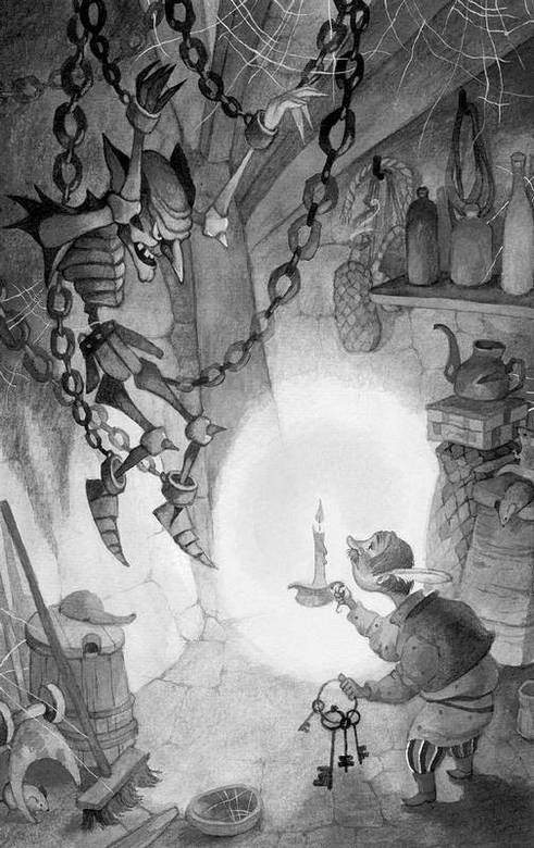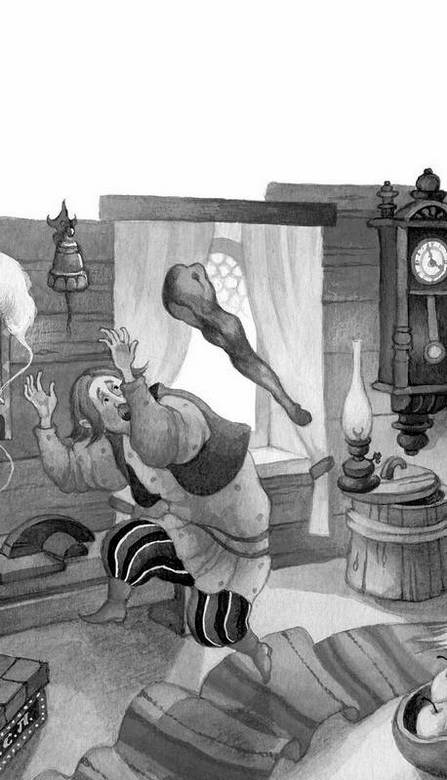 Чумичка всё поднимал, трогал и рассматривал. И вещи вели себя спокойно. Но едва он открыл сундучок, как оттуда выскочила увесистая дубинка и стала колотить писаря по бокам.