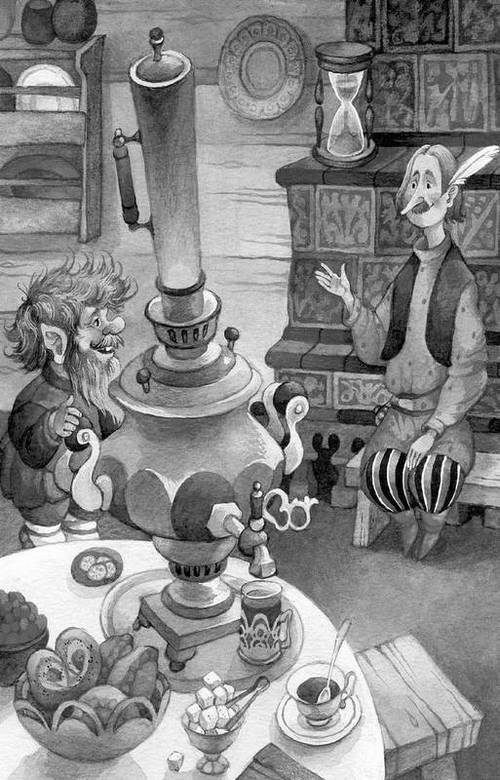 Они с Чумичкой перешли в горницу. Домовой занялся чашками и блюдцами, а писарь сел на лавку у печки и стал выспрашивать дядюшку.
