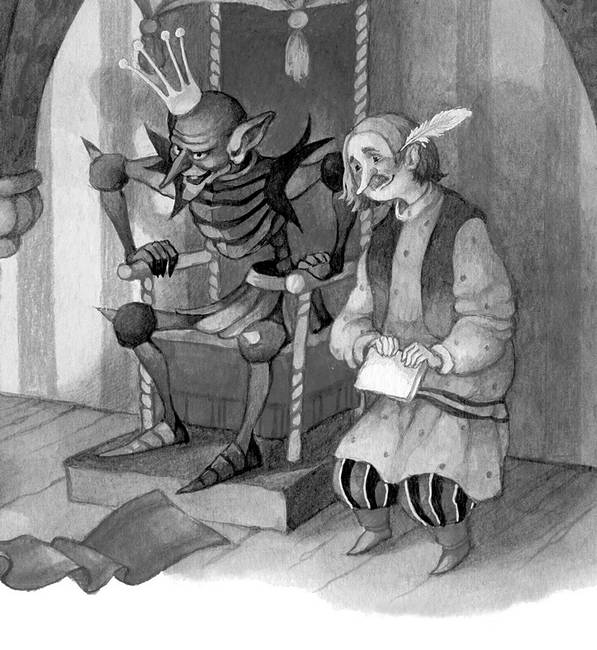 – Вот что, любезный, – властно сказал Кощей, – сейчас ты возьмёшь перо и бумагу и напишешь, что трон, корону и государство уступаешь мне!