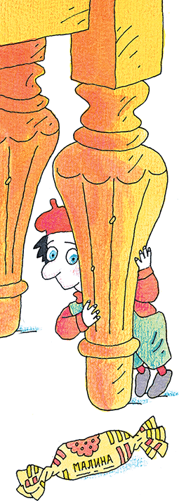 – Теперь она хочет конфету на пол положить, – продолжал радиомастер. – Если конфета пропадёт, значит, мы её съели. Тогда она будет нас искать.