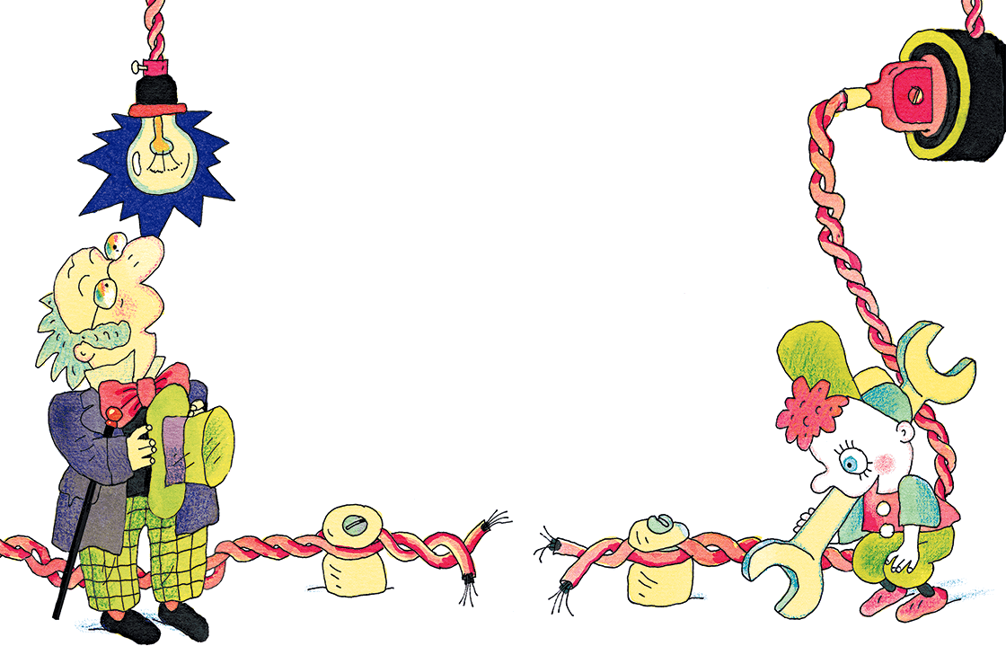 И он вышел. Прошло пять минут, однако Буре не возвращался. Не вернулся он и через десять, и через двадцать минут. Пылесосин по-настоящему заволновался. Взяв гаечный ключ побольше, он вылез из холодильника и пошёл вдоль провода к электрической розетке.