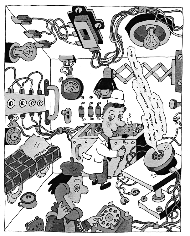 – Что значит – не можете выслать? Не хватит бензина у вертолётика? А ему не надо лететь до самого Дорохова. Пусть сядет на крышу электрички и приедет. А здесь от станции совсем рядом. А мы на телефонной будке крест нарисуем. Там и оставите щётку… Кто принял заказ? Петров? Ну смотрите, Петров, чтоб завтра щётка была! Звонил Холодилин. Не Молотилин, а Холодилин. Всё. Привет Великому Трансформатору!