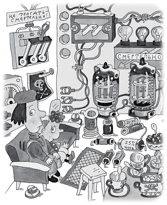 Комната радиомастера была не такой уютной, как у Буре, и не такой обыкновенной, как у Холодилина. Она больше была похожа на трансформаторную будку или машинное отделение лифта. Кругом резиновые коврики, рубильники и пульты с лампочками.