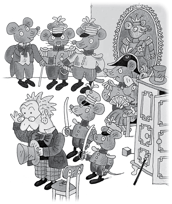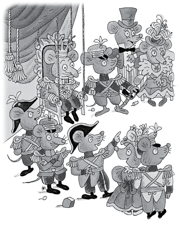 Вокруг трона стояли важные мышиные генералы, перепоясанные ремнями из колбасной кожуры. Они и начали допрос Ивана Ивановича:
