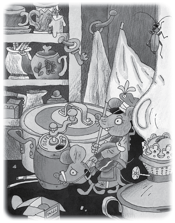 – Ну вот что! – пресёк его Холодилин. – Если нам вернут мастера, мы дадим за него выкуп – колбасу, сахар. А если не вернут, вам будет плохо. Мы пустим в ход мышеловки, электричество и даже всемирные потопы.