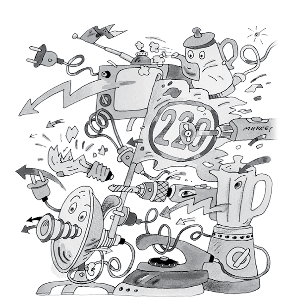 – Сначала гарантийных человечков на 127 было много. Они считали себя главней. И радиопередачи делали для себя, и паяльники, и утюги. Только мастеров на 220 становилось всё больше. И те, которые на 127, в конце концов остались в меньшинстве. Но они уже привыкли считать себя важнее и ни в чём не уступали. Тогда и началась война. В каждом доме, на каждом заводе! Сколько пленных было захвачено, сколько разных поломок организовано – целую книжку можно написать.