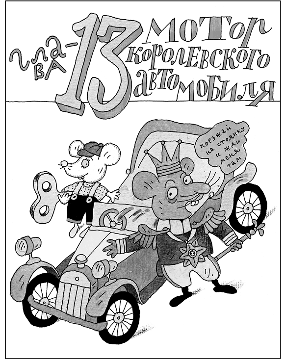 Тут на игрушечном автомобильчике подъехал король. Его окружили конные, а вернее, мышиные генералы кавалерии, перетянутые ремнями из колбасной кожуры. Король выбрался из автомобиля и сказал ему: