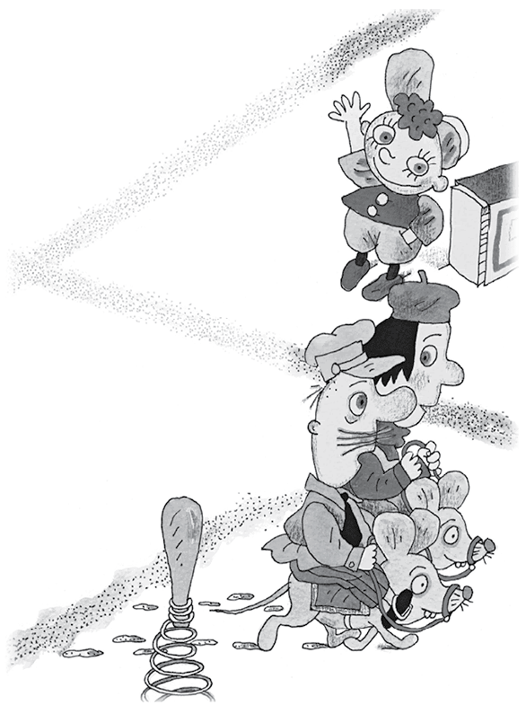 Мастера последний раз оглядели комнату и спустились на пол, где ждала их мышиная кавалерия, привязанная к ножке стола. Верхом на мышах они вернулись в холодильник.
