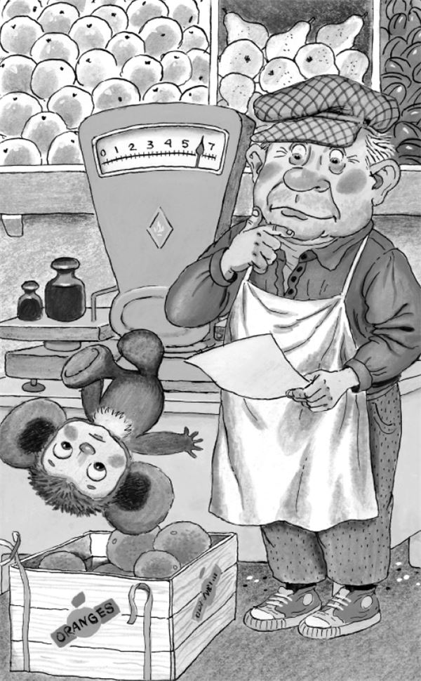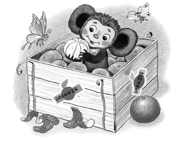 Ящики долго плавали по морям и океанам и в конце концов оказались во фруктовом магазине очень большого города. Когда их открыли, в одном апельсинов почти не было, а был только толстый-претолстый Чебурашка.