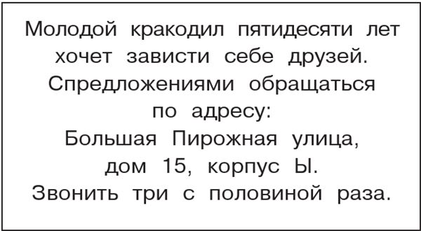 – Во-первых, слово «крокодил» пишется через «о», а во-вторых, какой же вы молодой, если вам пятьдесят лет?