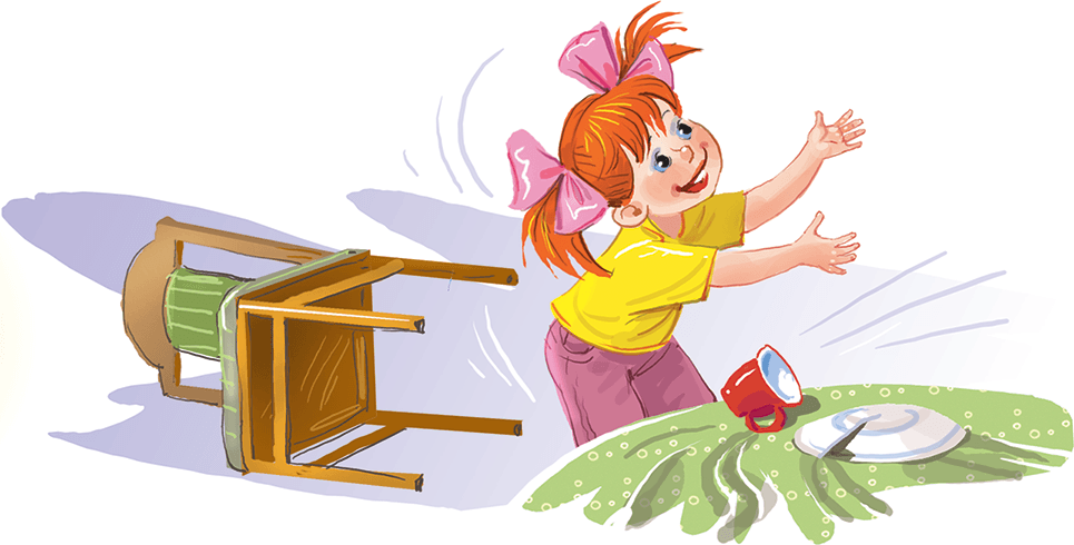 Тем временем Анфиса раскачалась на стуле, упала вместе с ним на пол и побежала на четырёх лапках со стулом на спине. Потом влезла на шкаф и там села, как царь на троне.