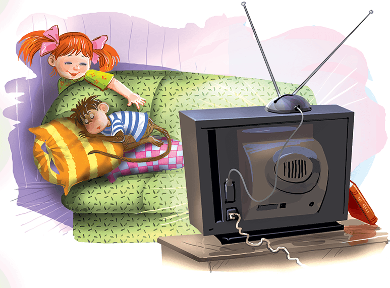 Папа её из стула достал и на диван перед телевизором посадил. Тут и мама пришла. Мама пришла и сразу сказала:
