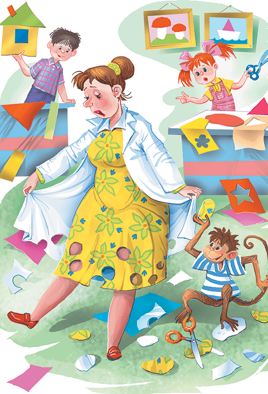 Елизавета Николаевна даже успокоилась. Только рано. Потому что после полдника было художественное вырезание. Елизавета Николаевна сказала ребятам: