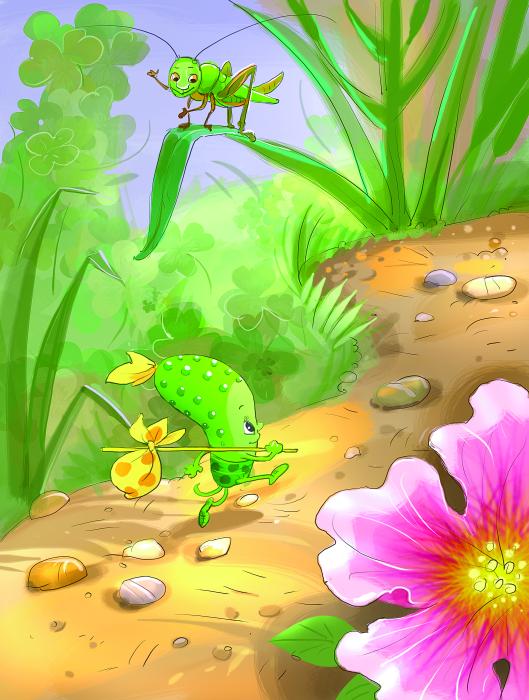 – Тогда прыгай ко мне на иголки. Я тебя к деткам отвезу. Они любят всё зелёное.