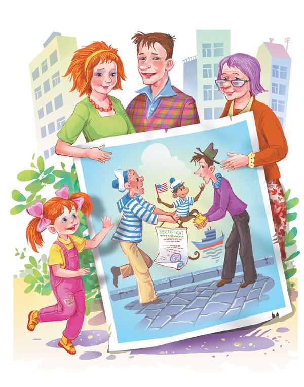 Папа пришёл домой, а Веры и бабушки нет. Они в песочнице во дворе играли. Папа обезьянку оставил и за ними побежал. Привёл их домой и говорит: