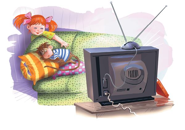 Папа её из стула достал и на диван перед телевизором посадил. Тут и мама пришла. Мама пришла и сразу сказала: