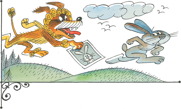 А тут Шарик является и зайца в зубах приносит. И у зайца язык свешивается, и у Шарика. Устали оба. Но зато Шарик счастлив, а заяц не очень рад.