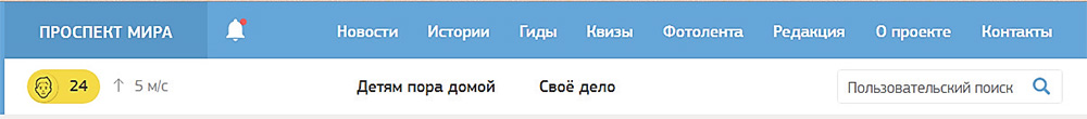 Рис. 8. Рубрикатор новостного сайта «Проспект Мира»