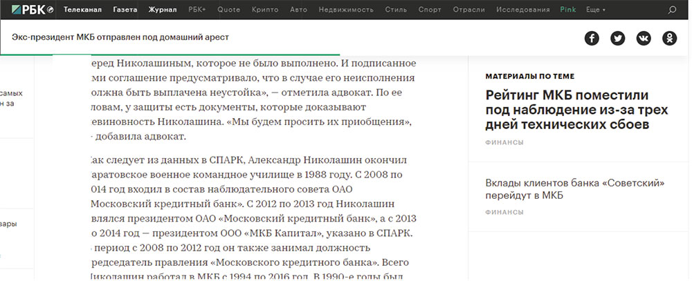 Рис. 13. Гипертекстуальное сюжетирование на сайте РБК