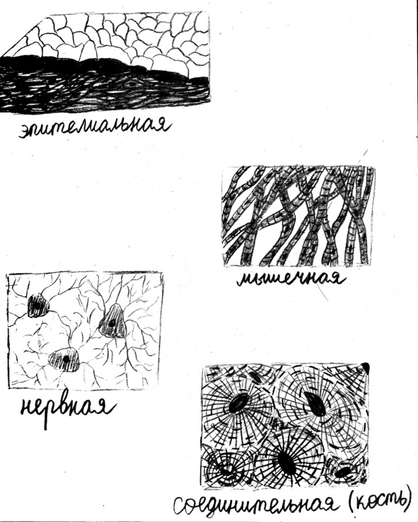 – Ну что ж, пока ты смотришь на эту новую для тебя ткань, я расскажу, что всего их четыре вида. С нервной и мышечной ты уже знакома, ещё остались эпителиальная – она перед тобой – и соединительная.