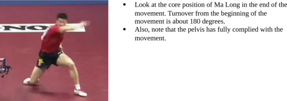 It should be noted that simultaneous inclusion of the four parts of the body is important in all variations of top-spin. Without exception. Well remember these parts: