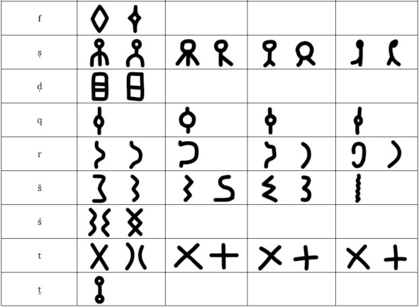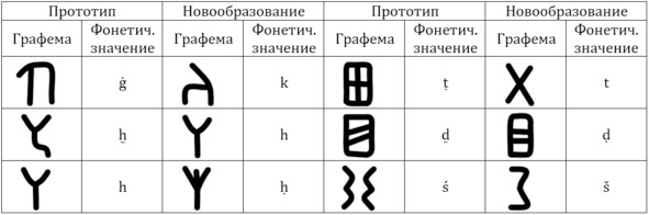 Таблица 7. Графемы вторичного образования в финикийском алфавите.