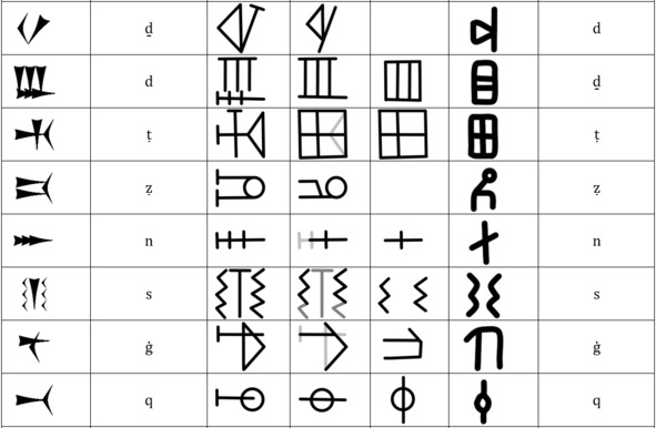 Таблица 11. Сравнение формы некоторых знаков южноаравийского алфавита.